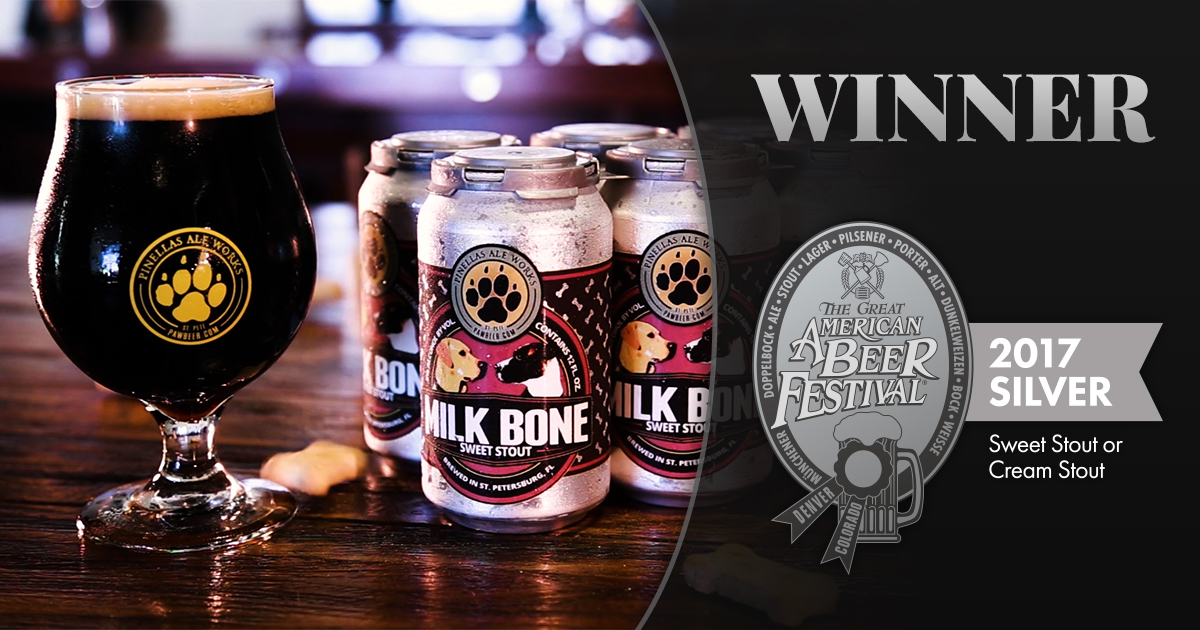 Pinellas Ale Works Wins Silver in the Great American Beer Festival for “Milk Bone Sweet Stout” St. Petersburg, FL • October 9th, 2017 — Pinellas…