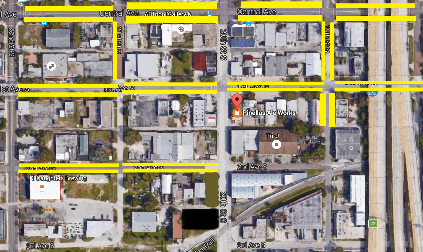 We have parking in both the front and rear of our building. Referencing the map below, yellow bars indicate additional street parking available around the brewery.